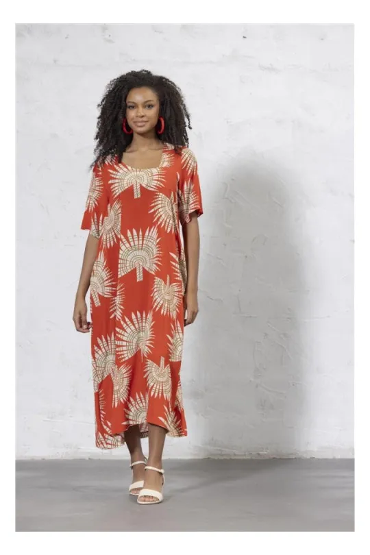 Robe grande taille femme G'Ozé imprimé palmier manches courtes