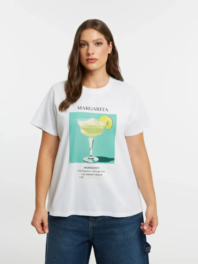 T-Shirt grande taille blanc avec motif margarita devant