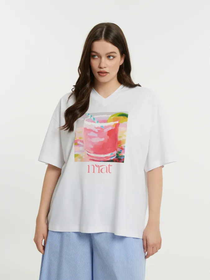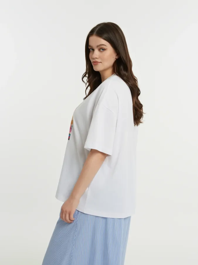 T-Shirt blanc grande taille avec motif placé devant